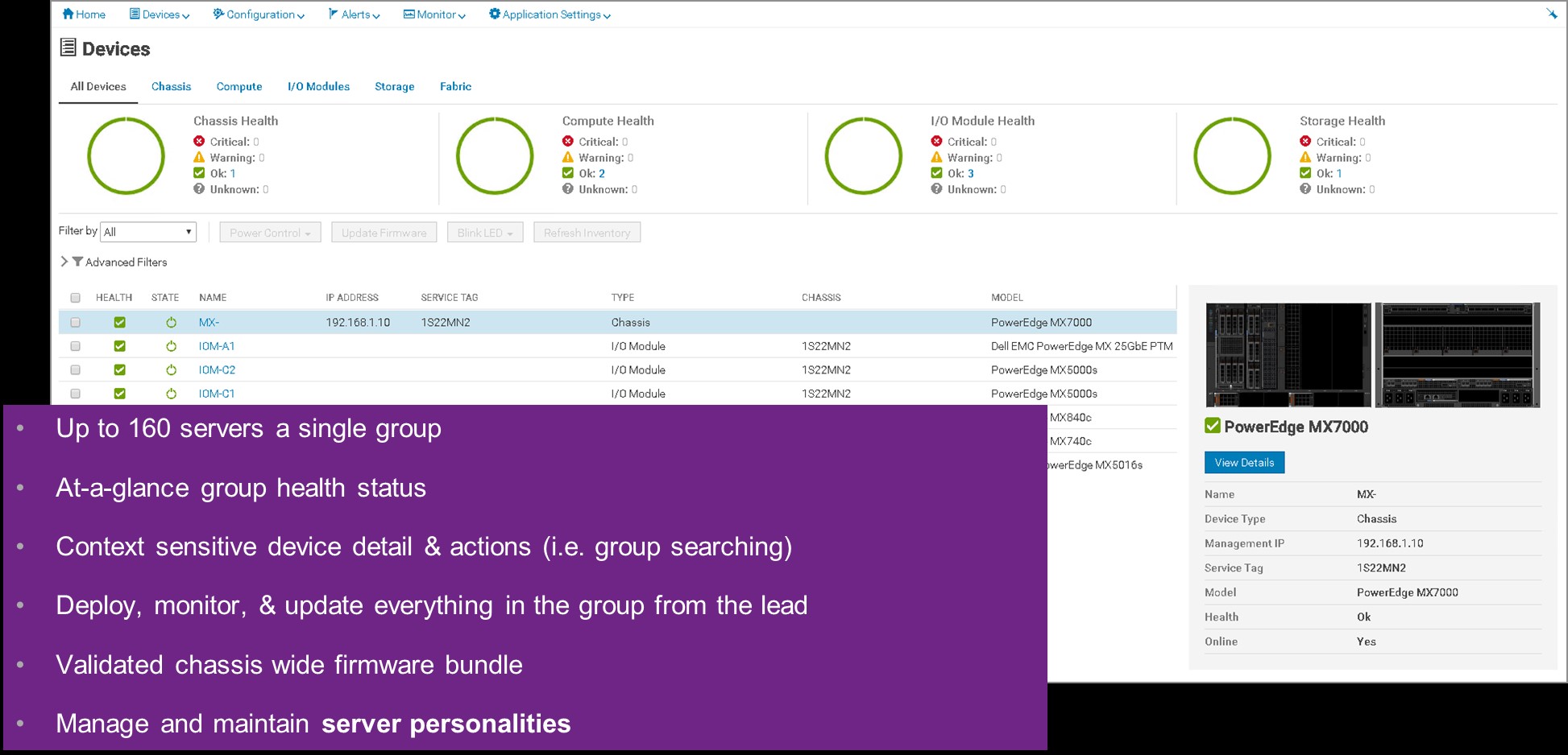 Open Manage Enterprise Modular Edition: מחליף כלי ניהול מרובים ברמת הארגון, עם פלטפורמת ניהול מאוחדת ויחידה. ניתן לפשט ולבצע אוטומציה של התפעול, הבניה והניהול של מרכזי נתונים שלמים מאותה פלטפורמה יחידה. לא רק שזה עושה את החיים קלים יותר, אלא גם מאפשר שליטה טובה יותר בעלויות הניהול.