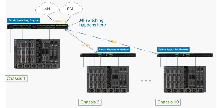 ה- FEM מחבר את כל ה- NIC של שרתי הלהב (blade) בתוך ה- MX7000 אל ה- FSE באמצעות כבל של 200Gb (למעשה 2 כבלים לטובת היתירות) וכל זאת ללא כל OVERSUBSCRIPTION !!!.