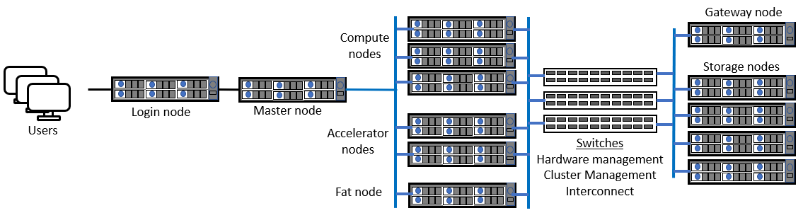באופן כללי, ישנם מספר סוגים של תפקידים ופונקציות באשכול של HPC