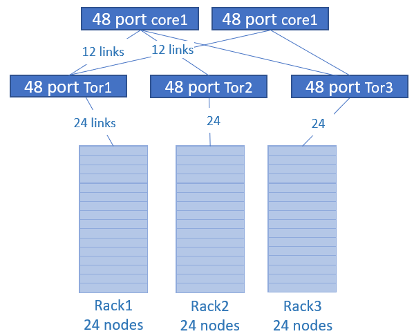 [איור מס. 2: חיבור של 72 צמתי חישוב למתגים מסוג ToR ו- Core]