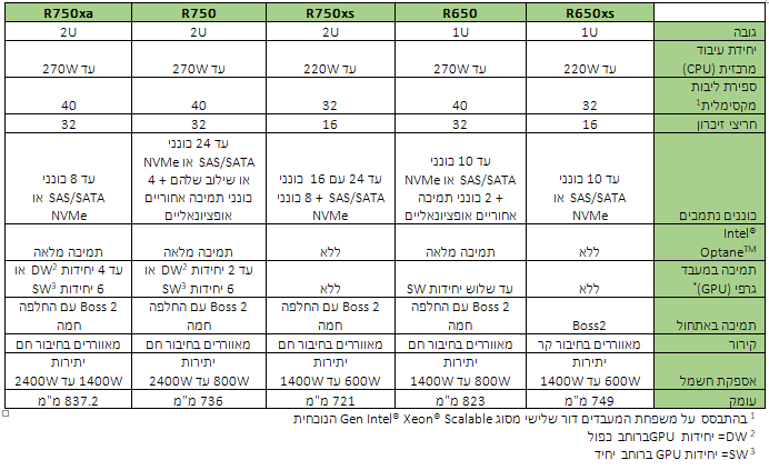 השוואה בין המודלים השונים של שרתי – PowerEdge דגמי "xs" לעומת דגמים "סטנדרטיים" לעומת דגמי "xa"