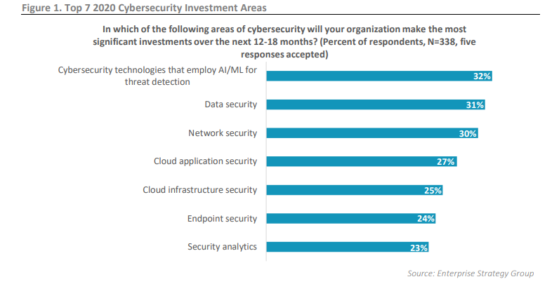 מחקר ESG מאשר כי מרבית הארגונים יגדילו את ההוצאות על אבטחת סייבר, במטרה להגן על תהליכים עסקיים ולנטרל איומים מסוכנים. רובם צפויים להשקיע באנליטיקה מבוססת AI\ML, אבטחת נתונים, אבטחת רשת ואבטחת יישומים. הנתונים מצביעים על כך שארגונים רבים נמצאים בתהליך לחידוש תשתית אבטחת הסייבר שלהם במטרה לקידום היעילות, לשיפור תפעול האבטחה ולתמיכה בתהליכים עסקיים technology-driven.